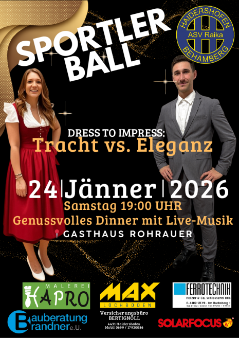 DRESS TO IMPRESS: "Eleganz vs. Tracht", Hauptsache beeindruckend (fühlt euch frei, zu tragen, worin ihr euch wohl fühlt) 19:00, Dinnermöglichkeit, Tischreservierung bei M. Schachner 0650 - 3813117 20:15 Balleröffnung Große Tombola