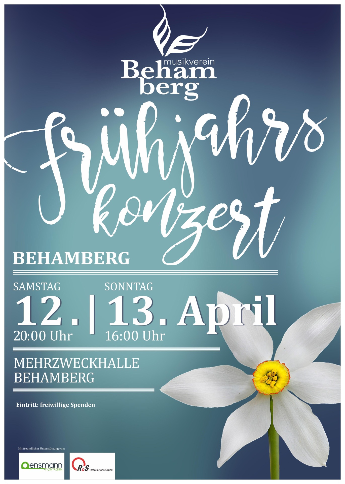 Der Musikverein Behamberg lädt am Samstag, den 12.03.2025, um 20:00 Uhr sowie Sonntag, den 13.03.2025, um 16:00 Uhr zum Frühjahrskonzert in die Mehrzweckhalle Behamberg. Eintritt gegen freiwillige Spende. Auf zahlreiche Besucherinnen und Besucher freut sich der MV Behamberg!